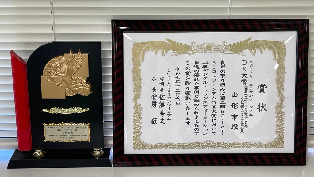 令和7年12月9日に行われた、5G・IoT・AIコンソーシアム主催のデジタル技術を活用した課題解決や地方創生に挑戦する県内の団体、企業等を表彰するDX大賞において、山形市健康ポイント事業SUKSKの新サービス「AI健康アドバイス」がDX大賞を受賞しました。5G・IoT・AIコンソーシアム DX大賞公式サイト