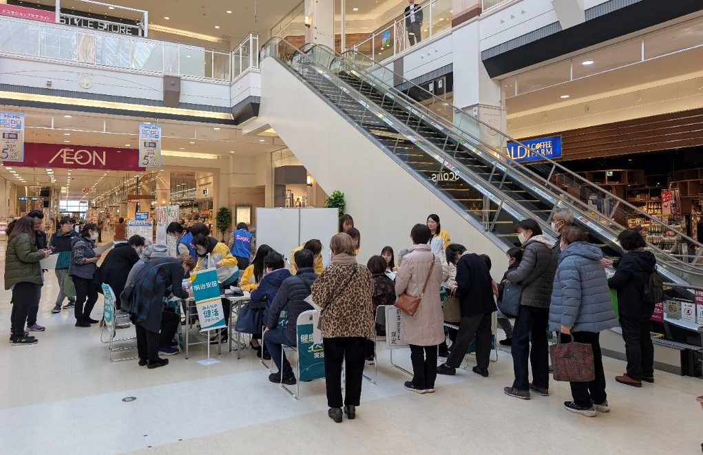 明治安田生命株式会社様による野菜摂取量測定、骨密度測定、最終糖化産物測定、血管年齢測定を実施しました!284人に参加していただきました。